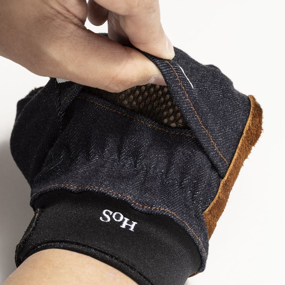 強さと動きやすさが共存する「呼吸するグローブ」。特許取得済のベンチレーション付き。